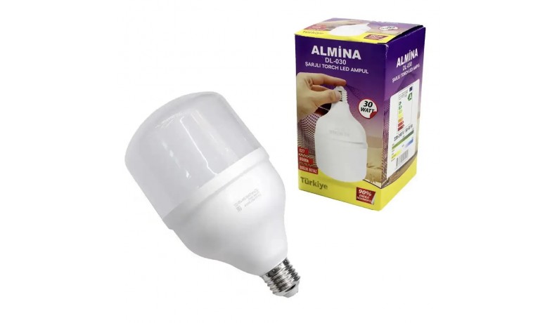 ALMINA DL-030 Світлодіодна лампа з акумулятором 30W E27. Акумуляторна лампочка Almina DL-030 — енергоощадна світлодіодна лампа нового покоління з вбудованим акумулятором, яка стане незамінним резервним джерелом світла в побутових умовах. Уластивість може похвалитися неабияк покращеними показниками яскравості та високою енергоефективністю.Благодаря стандартному цоколю E27 лампа ідеально підходить для заміни класичних ламп розжарювання.