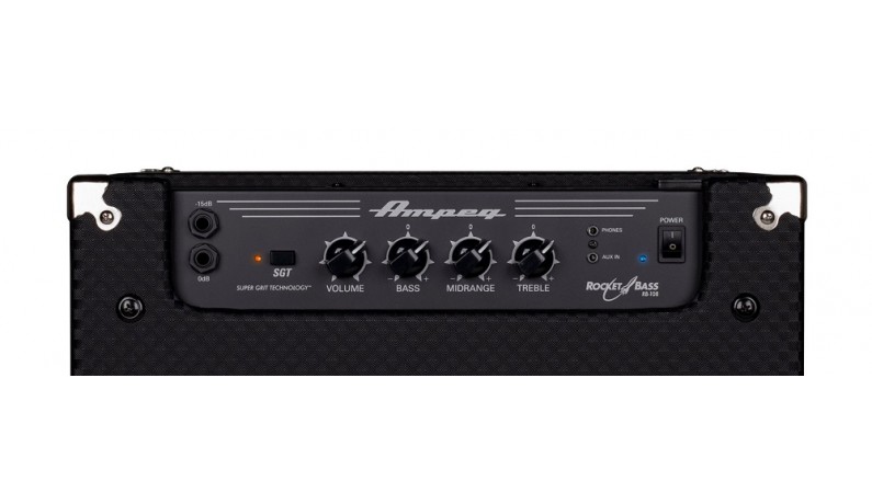 Також, як і знамениті старші брати, комбо Rocket Bass 108 отримав багато невід'ємних особливостей Ampeg, таких як преамп Ampeg Legacy, 3-смуговий еквалайзер, і нову схему овердрайву Super Grit Technology, для того щоб дати музикантові те саме легендарне звучання Ampeg. Два інструментальних входи (0дБ і -15дБ) дозволяють підключати як вінтажні інструменти, так і сучасні активні бас-гітари з високим вихідним рівнем. Додамо до цього додаткові AUX вхід та вихід для навушників, і ми отримаємо комбопідсилювач, готовий роздавати рок-н-рол де завгодно.