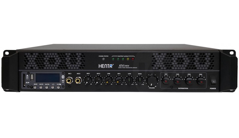 Підсилювач XDU2404 оснащений двома мікрофонними входами (вхід MIC1 має пріоритет), лінійним стерео входом, 2-смуговим еквалайзером а також має 4 вихідні групи з незалежним регулюванням гучності. А наявність лінійного виходу дозволяє об'єднати в єдиний ланцюг кілька підсилювачів для максимально зручної та гнучкої інсталяції.