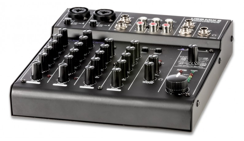 Мінімікшер з USB інтерфейсом. Вбудований процесор еффектів. 2 мікрофонні входи, 6 лінійних входів, 2 лінійних виходи, 1 вихід на навушники, фантомне живлення 48V. Не потрібно драйверів для Windows 7 \ 8 \ 10 (без ASIO)