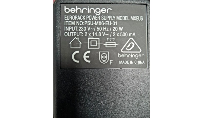 BEHRINGER PSU6-EU Блок живлення для мікшерних пультів UB1002FX, UB1202FX, Xenyx 1002FX, Xenyx 1202FX. Вхідна напруга - 230 В, вихідна напруга - 2х14,8 В (АС). Максимальний вихідний струм - 2х500 мА.