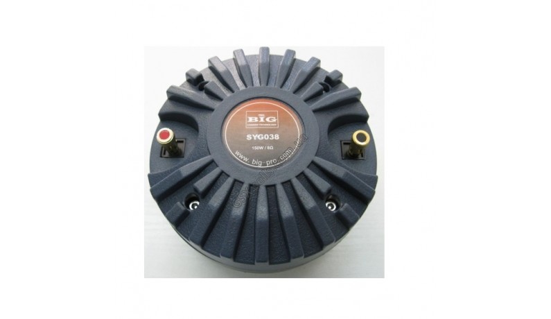 BIG SYG038 Драйвер вихід 1", катушка 51,3мм. Потужність: RMS 150 Вт Частотний діапазон: 800Hz-20КHz Чутливість (1W/1M): 109dB Котушка: 51,3мм-каптонтитан Вага магніту: 2,55 кг Опір: 8 Ом