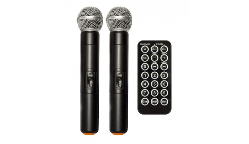 Двохсмугова активна АС з акумулятором і двома бездротовими мікрофонами.