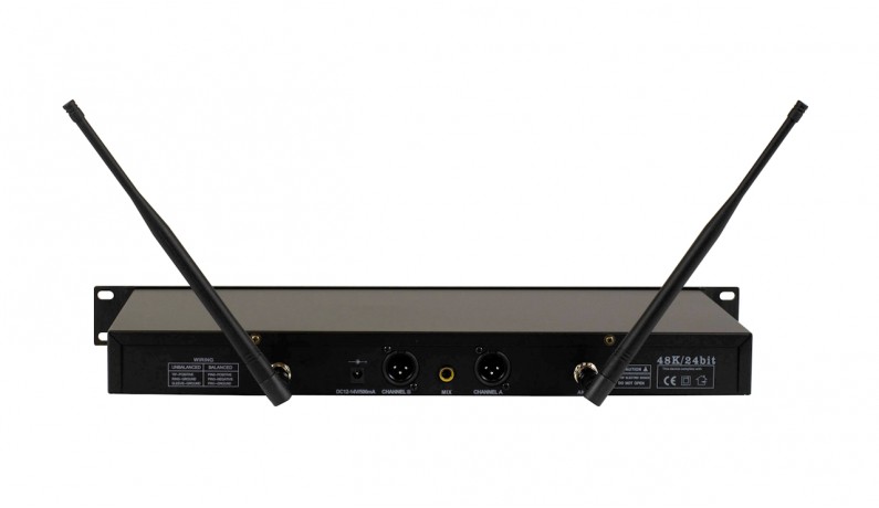 Професійна радіосистема UHF: два ручних динамічних радіомікрофони, 160 каналів - 640-694 МГц.