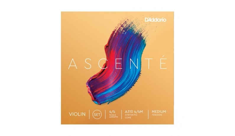 D'ADDARIO Ascente A310 4/4M Струни для скрипки розмір 4/4, середній натяг, синтетичний сердечник, відмінна стабільність строю, швидко "всідаються", чудовий відклик при грі смичком.