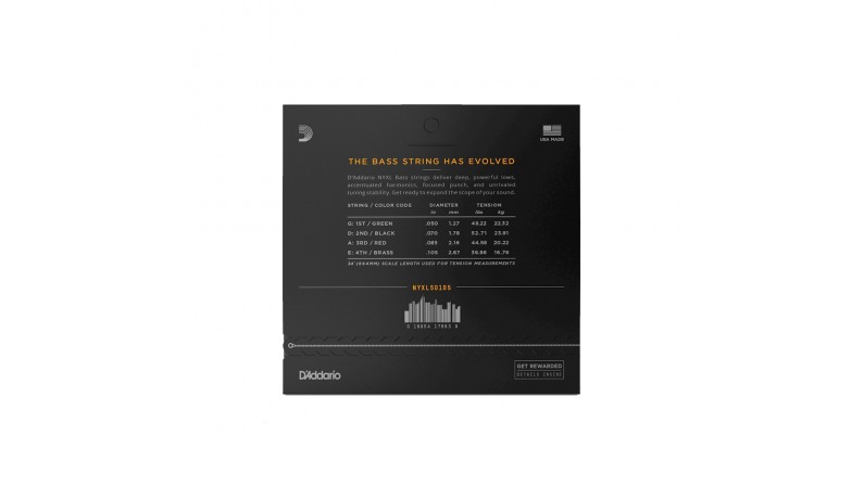 Завдяки впровадженню нових методик виробництва, NYXL істотно міцніше стандартних бас-гітарних струн і помітно стабільніше тримають стрій. Перероблена обмотка з нікельованої сталі має збільшені магнітні характеристики, що в підсумку підвищує рівень вихідного сигналу з датчиків забезпечуючи глибокий "панчевий" бас і багате, насичене гармоніками звучання. NYXL чудово підійдуть для будь-яких музичних стилів завдяки збільшеному динамічному діапазону і чудовому сустейну.