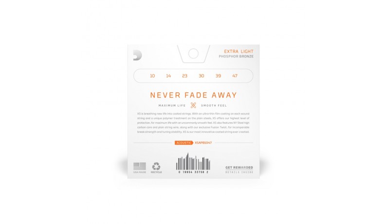 Тембр D'Addario живе в кожній струніXS вдихає нове життя в струни з покриттям. Завдяки ультратонкому плівковому покриттю кожної струни з обмоткою і унікальній полімерній обробці цільних сталевих струн XS пропонує найвищий рівень захисту для максимального терміну служби і надзвичайно гладкого відчуття. XS - найінноваційніша струна з коли-небудь створених.