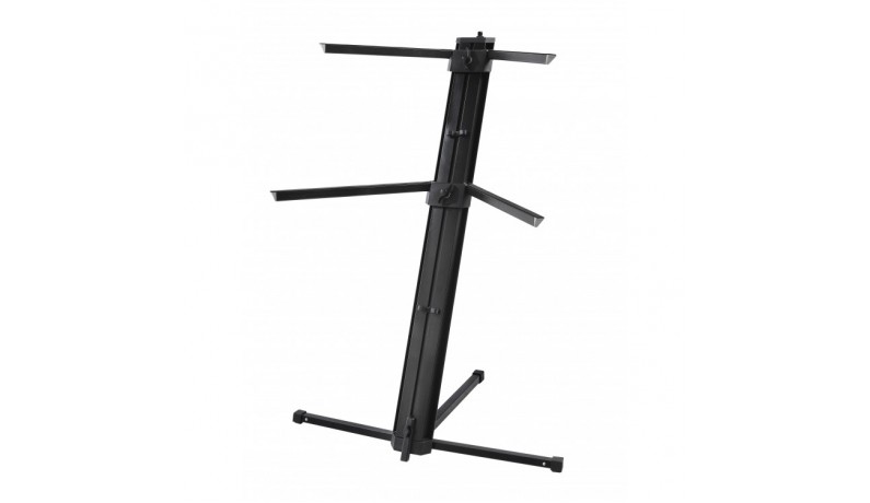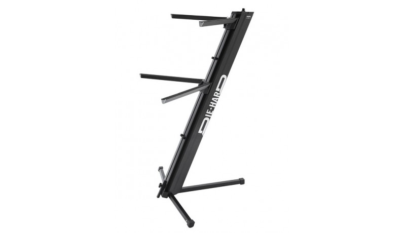 DH KS10BK Стійка для клавішних інструментів двоярусна. Функціональна конструкція, об'єднана з міцною стійкою, забезпечують максимальну надійність використання. Основні особливості: подвійний регулятор тримача по висоті для 2-х інструментів. Міцні сталеві труби з екструдованого алюмінієвого профілю забезпечують максимальну надійність. Складна конструкція дозволяє легко транспортувати стійку в чохлі, який входить в комплект стійки.