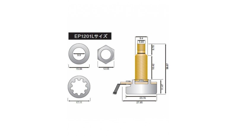 DIMARZIO EP1201L Потенціометр для гітари з подовженим стержнем, 500 кОм