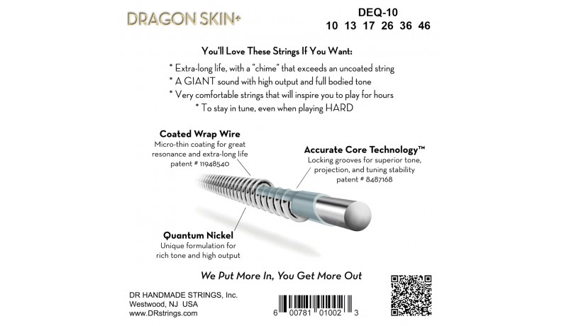 DR Dragon Skin+ DEQ-10 Coated Струни для електрогітари .010-.046