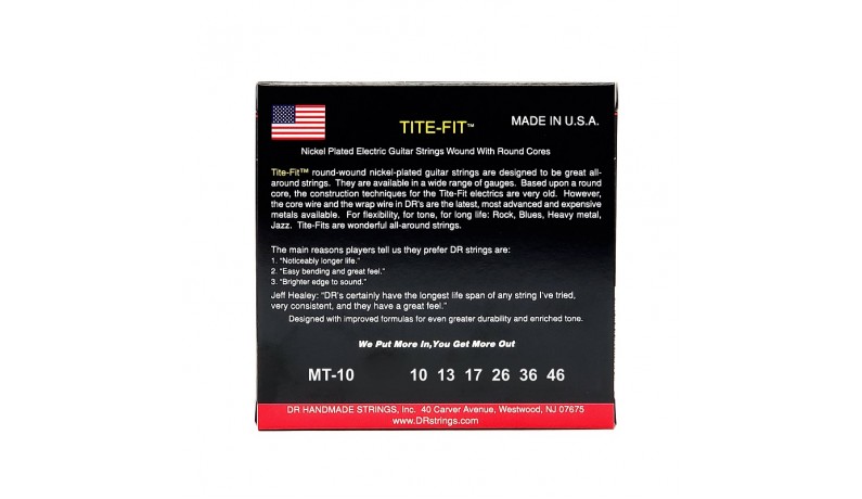 Струни DR виробляються у Вествуді, штат Нью-Джерсі. Ми використовуємо тільки найкращі матеріали американського виробництва, починаючи з сердечника та обмотувального дроту, закінчуючи кульковими наконечниками та закінчуючи фінальною упаковкою. Коли хтось бачить логотип DR - він отримує найкраще!