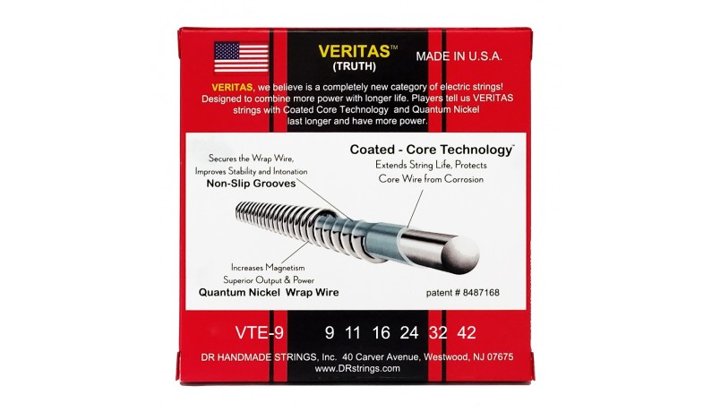 DR VTE-9 Veritas Coated Core Electric Струни для електрогітари 09-42
