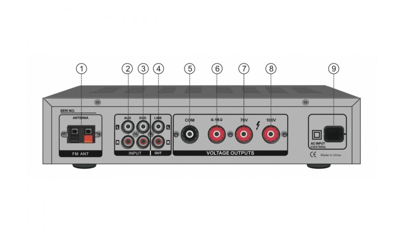 - Режими роботи: 70V, 100V, 4-16 Ohm