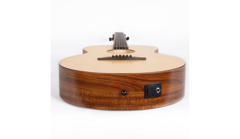 Акустична гітара з підключенням та ефектами трансакустики, розмір 4/4 (41"), верхня дека з модернізованим HPL (ламінат високого тиску) європейської ялинки, нижня дека та обичайка з модернізованим HPL (ламінат високого тиску) Koa, гриф з нато (Type C ), кріплення грифу Enya BT Bolting II, накладка на гриф та міст Richlite, 20 ладів, мензура 648 мм, в комплекті: подарункова коробка, чохол, кабель для підключення, каталог, анкерний ключ.