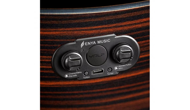 Трансакустична гітара ENYA EA-X1 PRO/EQSB має всі властивості властиві дорогих інструментам, при цьому за прийнятну ціну. Верхня дека виготовлена із масиву ялини, яка сушилася повітряним способом протягом 10 років, а нижня з обичайками виготовлена із модернізованого ламінату високого тиску з деревини палісандра. Завдяки такій дивовижній конструкції вона виробляє чіткий, чистий звук. Матове покриття стійке до подряпин і може чудово справлятися з екстремальними температурами, що робить цю гітару ідеально для гри в будь-яких умовах. Ще одна унікальність полягає в наявності електроніки Doube SO Transacoustic та ефектів реверберації, хорусу/дилею.