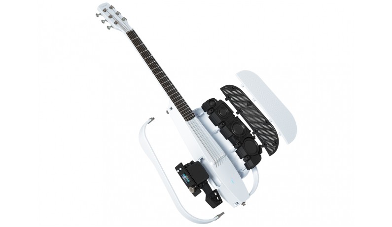 - Комплектація: Гітара, чохол, підставка для заряджання, бездротова педаль, ремінець, кабель для заряджання, ручний бездротовий мікрофон, навушники.