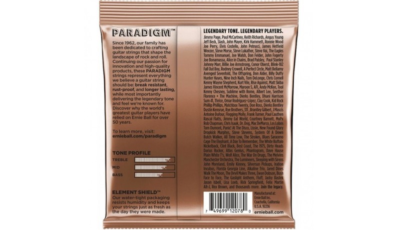 Струни для акустичної гітари Ernie Ball Slinky Paradigm забезпечують відмінну міцність і більш тривалий термін служби, зберігаючи при цьому 100% звук. Лідируюча в галузі високоміцна сталь використовується як в намотаних, так і в простих струнах, щоб забезпечити чудову міцність на розрив і знос струн, які швидко налаштовуються і витримують самі напружені стилі і умови гри.
