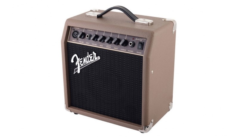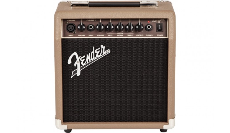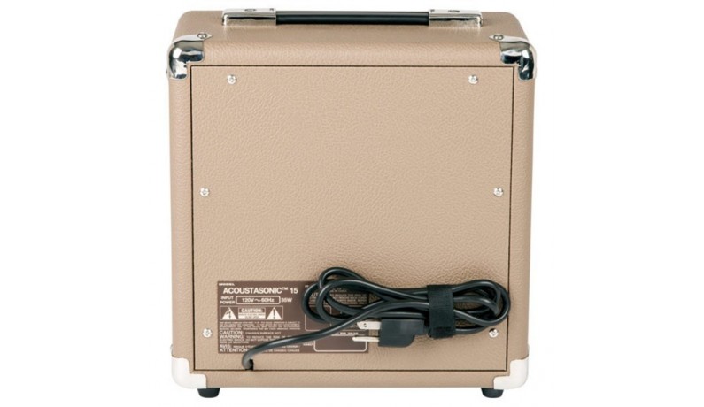FENDER ACOUSTASONIC 15 являє собою мобільне і ефективне рішення для озвучування електроакустичної гітари і вокального мікрофона, що володіє гнучкістю і простотою, достатніми для застосування в найрізноманітніших музичних інсталяціях. 15-ватний підсилювач оснащений одним 6-дюймовим повнодіапазонними динаміком спеціальної конструкції для більш ефективного відтворення високих частот і двома каналами. Кожен канал оснащений власним регулятором гучності, ефектом хоруса (для інструментального входу) з можливістю регулювання рівня і кнопкою включення, а також регуляторами еквалайзера Bass / Mid / Treble і виходом на навушники. Корпус приладу виконаний в класичному стилі Fender з коричневим текстурированним вініловим покриттям і хромованими металевими деталями. Крім безперечно шикарного зовнішнього вигляду, корпус також характеризується винятковою міцністю і надійністю.