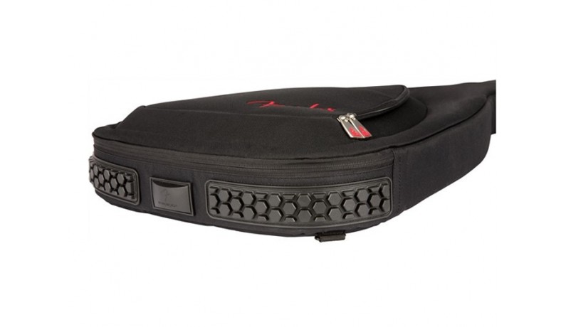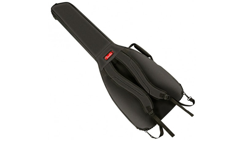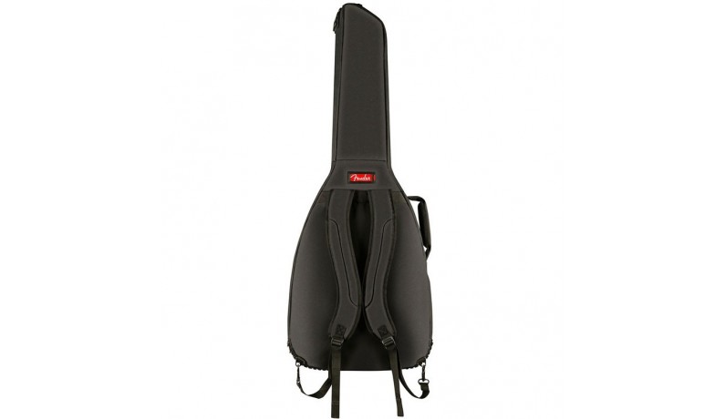 FENDER FA610 DREADNOUGHT GIG BAG закривається на міцну водонепроникну блискавку. Для перенесення в руці є дві ручки. Ззаду розміщені два регульованих за довжиною ременя для носіння за спиною. Знизу і зверху чохол оснащений щільними фактурними гумовими накладками, які забезпечують додатковий захист і запобігають ковзанню при установці чохла вертикально. Спереду розміщена кишеня для аксесуарів з додатковою маленькою кишенькою для дрібних предметів. Чохол FENDER FA610 DREADNOUGHT GIG BAG представлений у чорному кольорі з контрастним червоним логотипом «Fender».