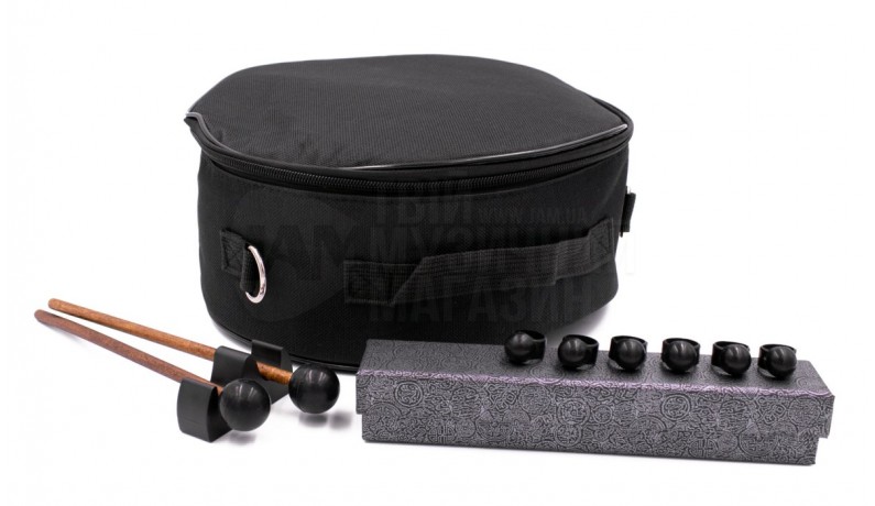 Комплектація: Глюкофон, Чохол з ременем на плече, Палички (2шт), Підставка для паличок, 6 гумових накладок для гри пальцями, Запасні наклейки з номерами язичків, Брошура з нотами.