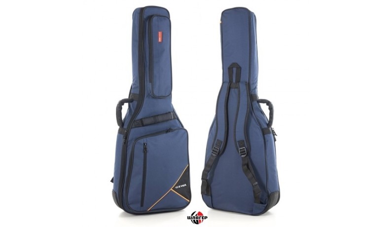 GEWA 213101 Premium 20 Чохол для класичної гітари. Високоякісний матеріал Cordrua 600 Denier, міцний і водостійкий, всі опорні деталі додатково втоплені і посилені, поролоновий ущільнювач великої товщини – 20 мм, запатентована система захисту GEWA NPS, додатковий захист біля грифу і корпусу, вшити додатковий захист біля кілків і струнотримача, масивна, щільна та зручна ручка. Додаткова фронтальна ручка, ущільнені, регульовані вшиті плечові ремені, велика кишеня для нот та аксесуарів, ударостійкий, вишитий логотип GEWA, колір: синій
