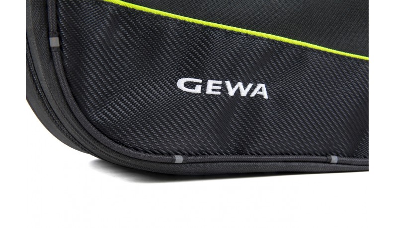 Зовні футляр оснащений водовідштовхувальним покриттям, що захищає інструмент від вологи. Передбачена кишеня для нот, світловідбивні елементи для кращої видимості у темний час доби та магнітні кнопки-застібки. Запатентовані тримачі GEWA надійно фіксують аксесуари всередині.