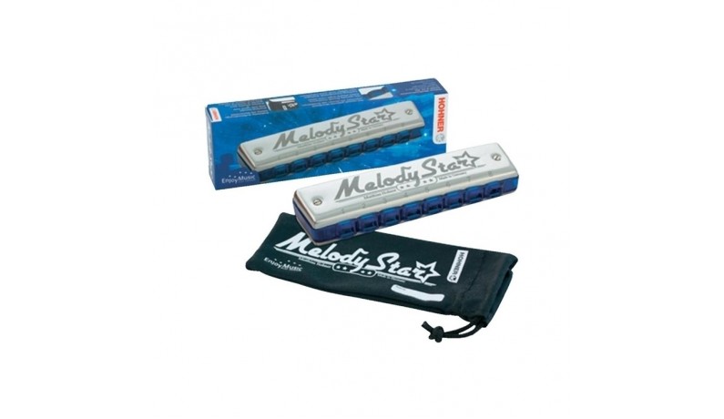 Гармошка Hohner Melody Star - діатонічна гармошка з 8-ма отворами. Цей інструмент є ідеальним вибором для навчання, адже усі отвори мають спеціальну форму. Видовжена й заокруглена форма мундштука (отвори губної гармошки) дозволяє швидко навчитись правильного дихання, а особливо легко навчитись гри одинарними нотами. Тому, гармошку Melody Star професійні викладачі рекомендують для перших музичних кроків та навчання.