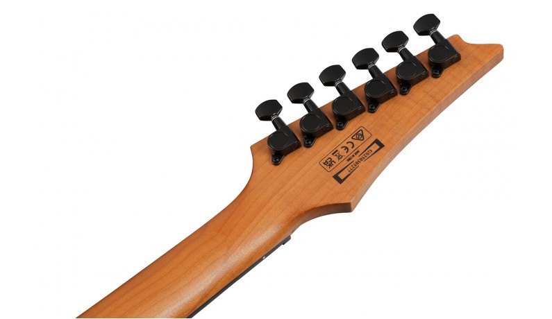 Гриф Roasted Maple пройшов спеціальну термічну обробку, яка значно підвищує його стабільність, довговічність та стійкість до перепадів вологості й температури. Це рішення гарантує, що інструмент триматиме стрій навіть у складних умовах. Накладка з Purpleheart (амарант) не лише підкреслює вишукану естетику гітари, а й акцентує її багатий тональний характер. Фірмова інкрустація у вигляді чорних реверсивних «акулячих зубів» (Reversed Black Sharktooth) надає грифу хижого та впізнаваного вигляду.