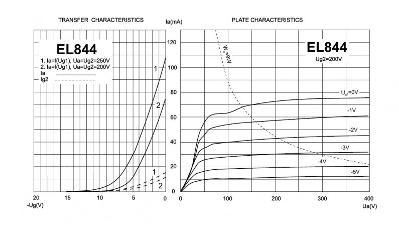 JJ EL844 - це абсолютно нова лампа, яка має потужність розсіювання в 9Вт і виступає в якості заміни стандартної EL84, на більшості підсилювачів. Вона має дуже згладжений м'який брейкап, як і у EL84, але тут він настає на пару децибел раніше. Вона чудово підійде для більшості катодних підсилювачів, з фіксованим зсувом (bias): Orange AD, Vox AC, Laney VC, Crate V і VC, включно з підсилювачами Palomino, Budda, Fender Blues і Pro Junior. Це також варіант для всіх 5-ватних Valve Junior, Blackheart, Mini Cat та інших.