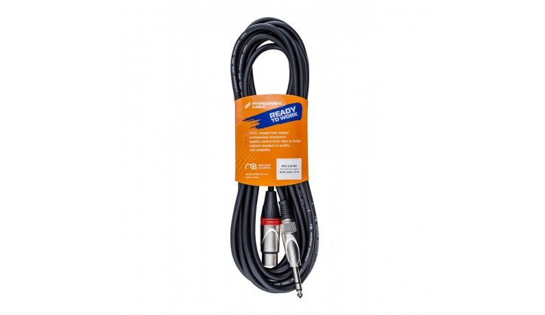Професійний мікрофонний кабель від бренду Maximum Acoustics, виготовлений з 6 мм екранованого кабелю з використанням безкисневої міді (OFC) та оснащений конекторами Jack Stereo 6,3 мм – XLR-female. Дана модель має довжину кабелю 5 м. Колір кабелю чорний, а маркувальних кілець конекторів – червоний.