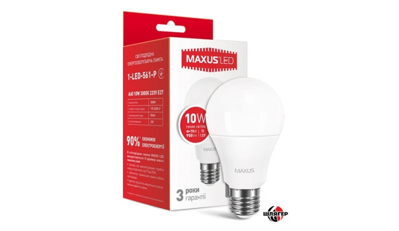 MAXUS 1-LED-561-P Лампа світлодіодна A60 10W 3000K 220V E27