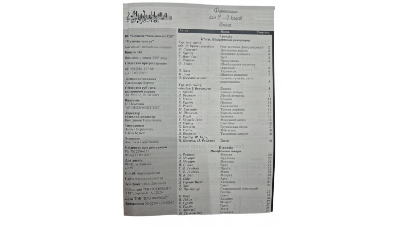 Музична школа №162 Ноти для фортепіано 2-3 клас, 2 частина