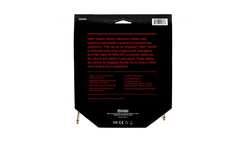 Інструментальні кабелі серії MXR Stealth роблять перемикання інструментів безшумним і безпроблемним. Ми використовуємо вбудований «безшумний» перемикач, щоб усунути будь-який неприємний шум при підключенні або відключенні кабелю, а завдяки оптимальній ємності і безкисневим мідним провідникам 20 AWG ви почуєте свій інструмент на новому рівні гучності і чіткості.