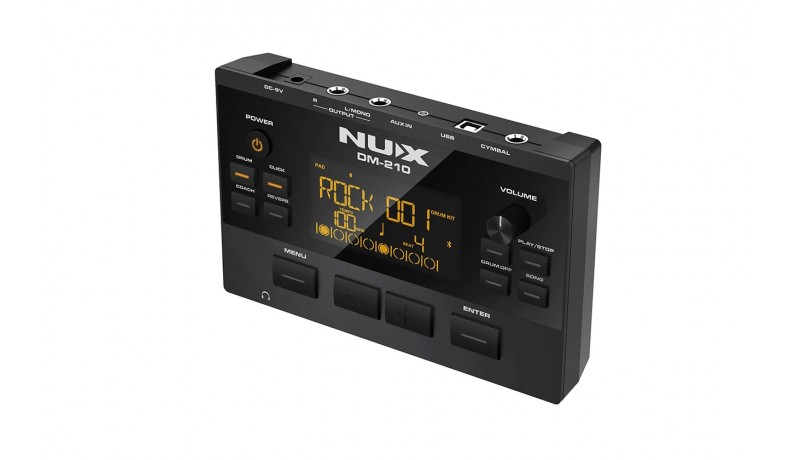 Ця ударна установка не вимагає багато місця – всього 1,5 квадратних метра! І все! Розмістіть її де завгодно. Ви можете займатися у своїй кімнаті, а потім перемістити установку. Вона неймовірно легка та зручна у транспортуванні. Як новачок у грі на барабанах ви можете не розуміти, що вам потрібно для практики. Не хвилюйтеся. DM-210 має функцію педагога, яка допоможе вам тренувати базові навички гри на барабанах. А якщо набридло практикувати базові навички і ви хочете пограти музику, просто натисніть кнопку "Song" та грайте на барабанах із демонстраційними піснями, які Nux підготували для вас. Також можна використовувати інтерфейс Aux in або Bluetooth для відтворення власних треків.