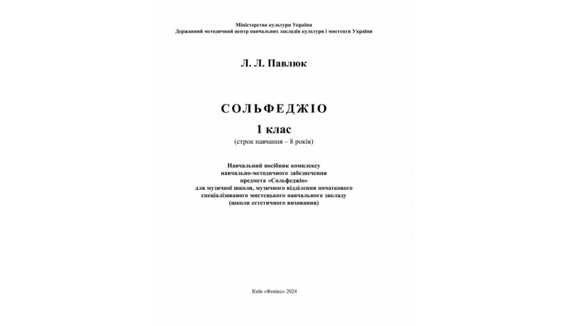 Павлюк Л.Л. Сольфеджіо 1 клас