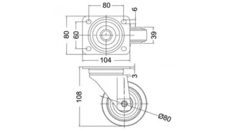 PENN ELCOM W0985/80z Blue Swivel Castor Колесо поворотне з фіксатором, діаметр 80мм, Допустиме навантаження 80кг