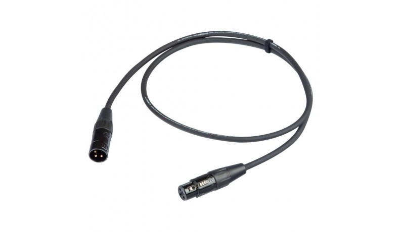 Професійний мікрофонний кабель, роз'єми: 3P XLR Rean мама -> 3P XLR Rean тато з чорним металевим корпусом і позолоченими контактами.
