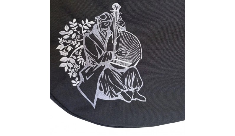 Чохол преміум класу для зберігання та транспортування Чернігівської бандури з перемикачами. Декорований вишивкою (машинною) нитками сірого кольору в народному стилі.