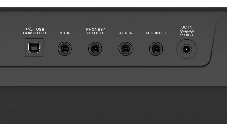 - Порт USB для використання як клавіатури контролеру з програмним забезпеченням для створення музики на комп’ютері;