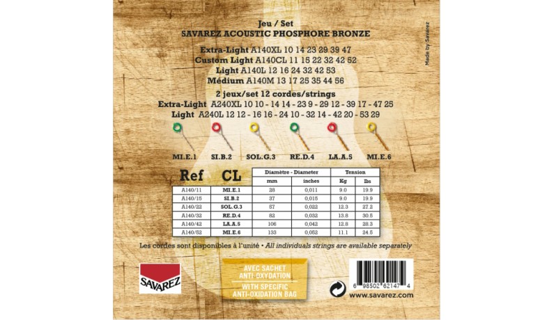 Компанія SAVAREZ вже 245 років виробляє струни і 70 років з них, струни із акустичноЇ бронзи і фосфорної бронзи. Завдяки величезному досвіду SAVAREZ вносить відповідні удосконалення з точки зору інновацій в новітній лінійці акустичних струн.