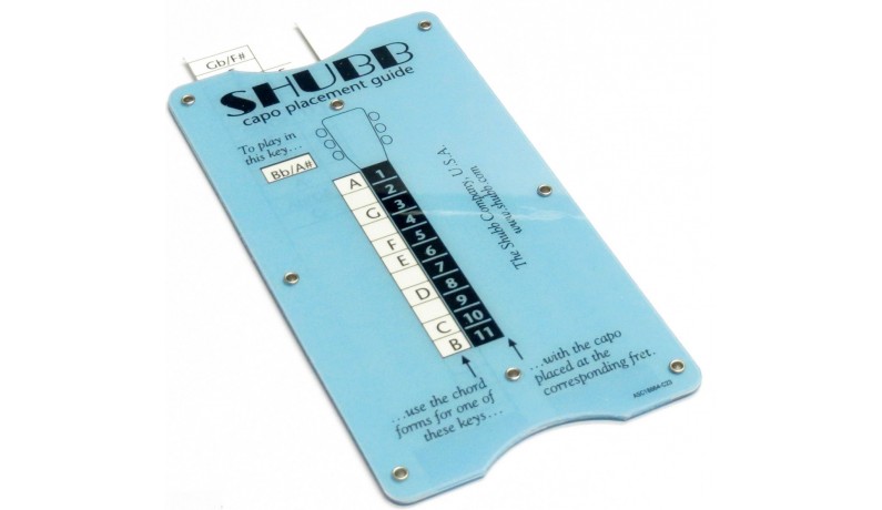 З іншого боку показано шкалу установки каподастра при різних тональностях.