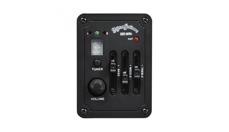 Активний передпідсилювач: Sigma DME PreampАкустична гітара Sigma DME обладнана якісним активним преампом CE-304 - звукознімач для акустичної гітари, що обладнаний преампом з 3-ох смуговим еквалайзером. Налаштовуйте регулятори Bass, Mid та Treble для необхідного звучання гітари. Усі регулятори працюють плавно, тому контролер Volume з рівною динамікою посилює та послабляє гучність. Завдяки цього регулятора, Ви знайдете ідеальний рівень гучності гітари, що є дуже важливим для гри у міксі з іншими інструментами.Налаштовуйте цей регулятор як можна голосніше, проте так, щоб звук не спотворювався. Також, встановлено тюнер з LED-дисплеєм, тому гітару легко налаштовувати за будь-яких умов.