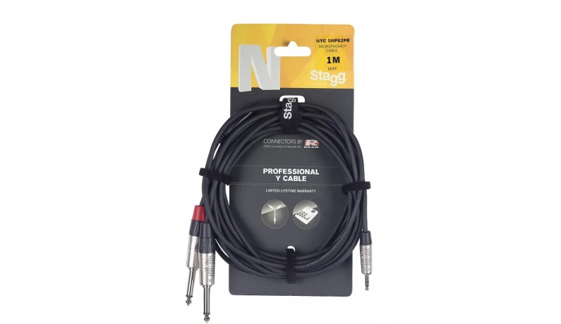 STAGG NYC1/MPS2PR — надійний Y-кабель серії N, створений для щоденного використання у студії та на сцені. Оснащений міцними роз’ємами REAN, він гарантує стабільне з’єднання та тривалий термін служби. Міні-джек стерео та два моно джеки забезпечують універсальне підключення до різного обладнання — від мікшерів і підсилювачів для навушників до музичних інструментів та аудіопристроїв. Чорне обплетення кабелю захищає провід від механічних пошкоджень і додає акуратного вигляду.