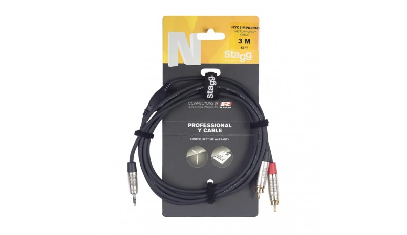 STAGG NYC3/MPS2CMR — надійний Y-кабель серії Deluxe, створений для зручного підключення вашої аудіотехніки. Він оснащений міні-джеком та двома RCA-роз’ємами, що робить його універсальним рішенням для з’єднання смартфонів, ноутбуків, плеєрів та інших пристроїв із домашніми чи професійними аудіосистемами. Міцний корпус, чорний колір та висока гнучкість кабелю забезпечують тривалий термін служби та стабільну передачу сигналу.