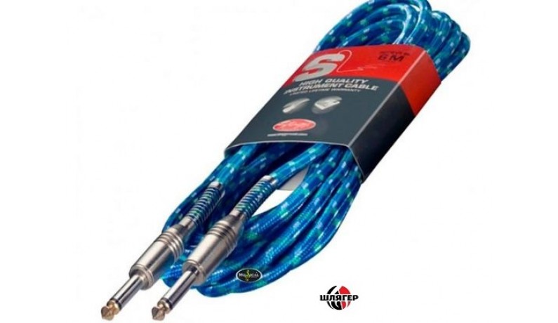 STAGG SGC6VT BL Готовий інструментальний кабель 6,3-6,3 мм., довжина 6м., текстильна плетена зовнішня обмотка, колір: синій з білим і зеленим