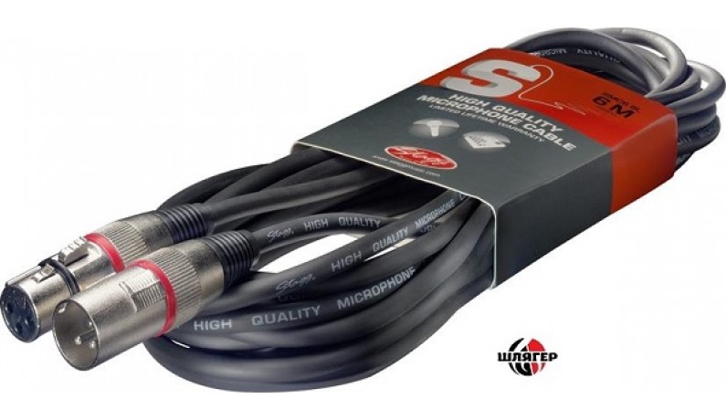 STAGG SMC6RD Готовий мікрофонний кабель XLR-XLR довжина 6м, чорного кольору, з червоним кільцем на роз'ємах