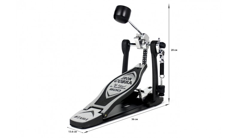 Як і у всіх педалей Iron Cobra, верхня частина затискача обруча підлаштовується під кут нахилу обруча бас-барабана, тому педаль TAMA HP600D завжди дуже стійка.