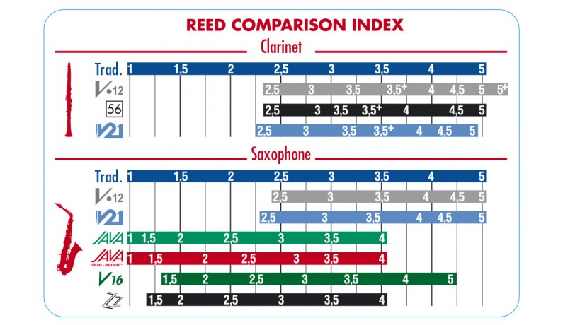Тростини Vandoren серії V12 для Сі-b кларнета є найбільш популярними серед професійних музикантів. Вони виготовляються з очеретяних трубок такого самого діаметру, що і для виготовлення тростин для альт саксофонів. Ці тростини мають товщу п'яту, довший зріз і товстіший кінчик. Довший зріз забезпечує подовжену зону вібрації, що надає звучанню краси і глибини, а потовщена п'ята робить його більш насиченим при віртуозній грі та подовжує термін використання самої тростини. Наприклад, 4-й номер тростини V12 приблизно еквівалентний номеру 3 1/2 Traditional.