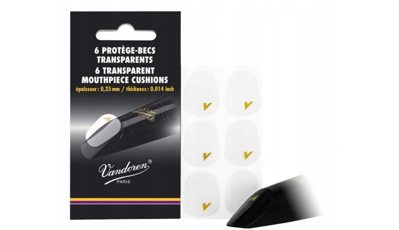 Прозора наліпка Vandoren VMC6+ захищає ваш мундштук від появи на його поверхні подряпин, залишених зубами. Завдяки тонкому шару унікальної клейкої речовини, після видалення наліпки на поверхні мундштука не залишається характерних липких слідів.